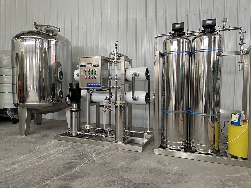 單級反滲透設備利用反滲透膜的滲透特性,通過一定的方式給水施加壓力,使濃水跟凈水產生分離,由于反滲透膜的膜孔徑僅為0.0001微米, 石英砂過濾罐適性炭過濾罐, 因此能夠有效地去除水中的溶解鹽類膠體、微生物、有機物等,從而制備出凈化水,是目前凈化水處理使用廣泛的一種制水工藝。